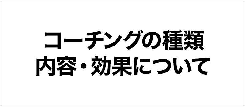 コーチングには、特に押さえておきたい種類、内容、効果があります。