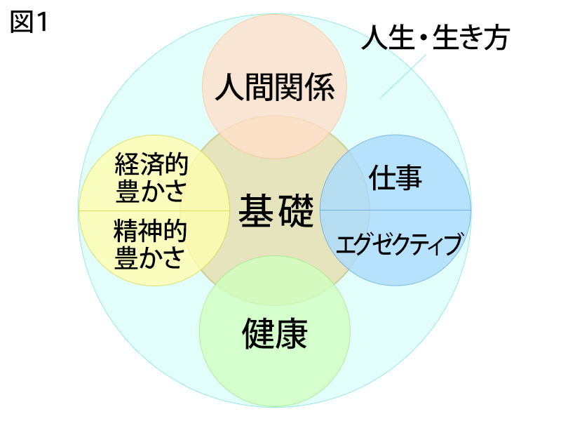 下記の図1にあるように、基本のコーチングを中心に、エグゼクティブ、人間関係、豊かさ、健康などをすべて含んでいます。